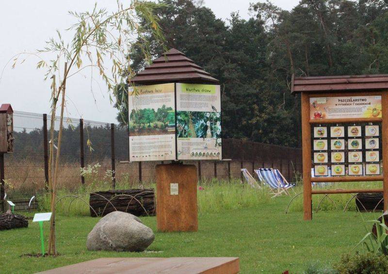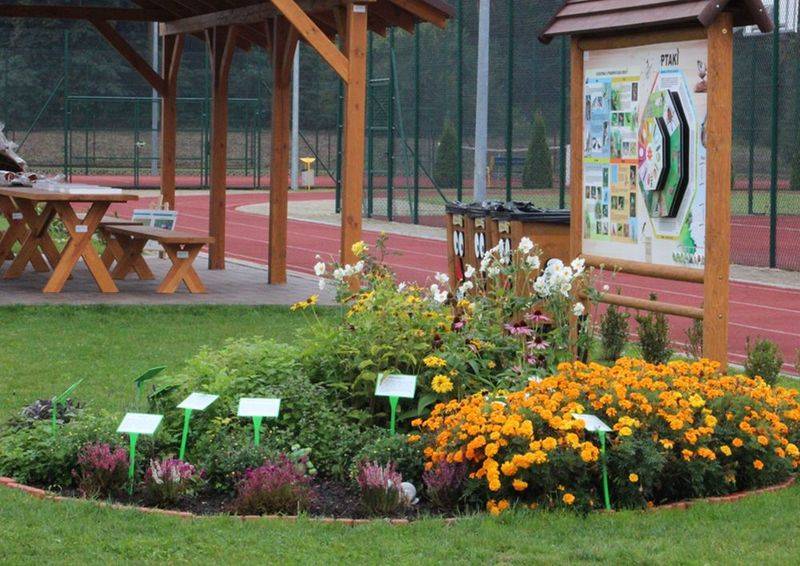 Punkt dydaktyczny „Bliżej natury" zostanie usytuowany na pasie zieleni o szerokości 8 m, położonym pomiędzy ogrodzeniem szkoły, a bieżnią i posłuży do realizacji wybranych zajęć z zakresu edukacji ekologicznej, przyrody, biologii, geografii, języka polskiego, plastyki, muzyki, techniki.