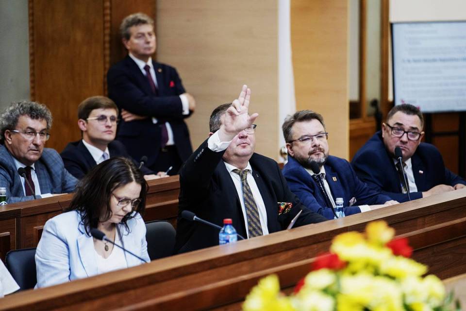 Wtorkowe obrady rozpoczęto od wyboru wiceprzewodniczących sejmiku. Zgłoszonych zostało troje kandydatów: Piotr Bors z Lewicy, Janusz Ciesielski z Prawa i Sprawiedliwości oraz Magdalena Spólnicka z Koalicji Obywatelskiej. W głosowaniu zdecydowano, że wybranej 7 maja, przewodniczącej Małgorzacie Grabarczyk (KO) pomagać będą: Magdalena Spólnicka (KO) i Piotr Bors (Lewica).