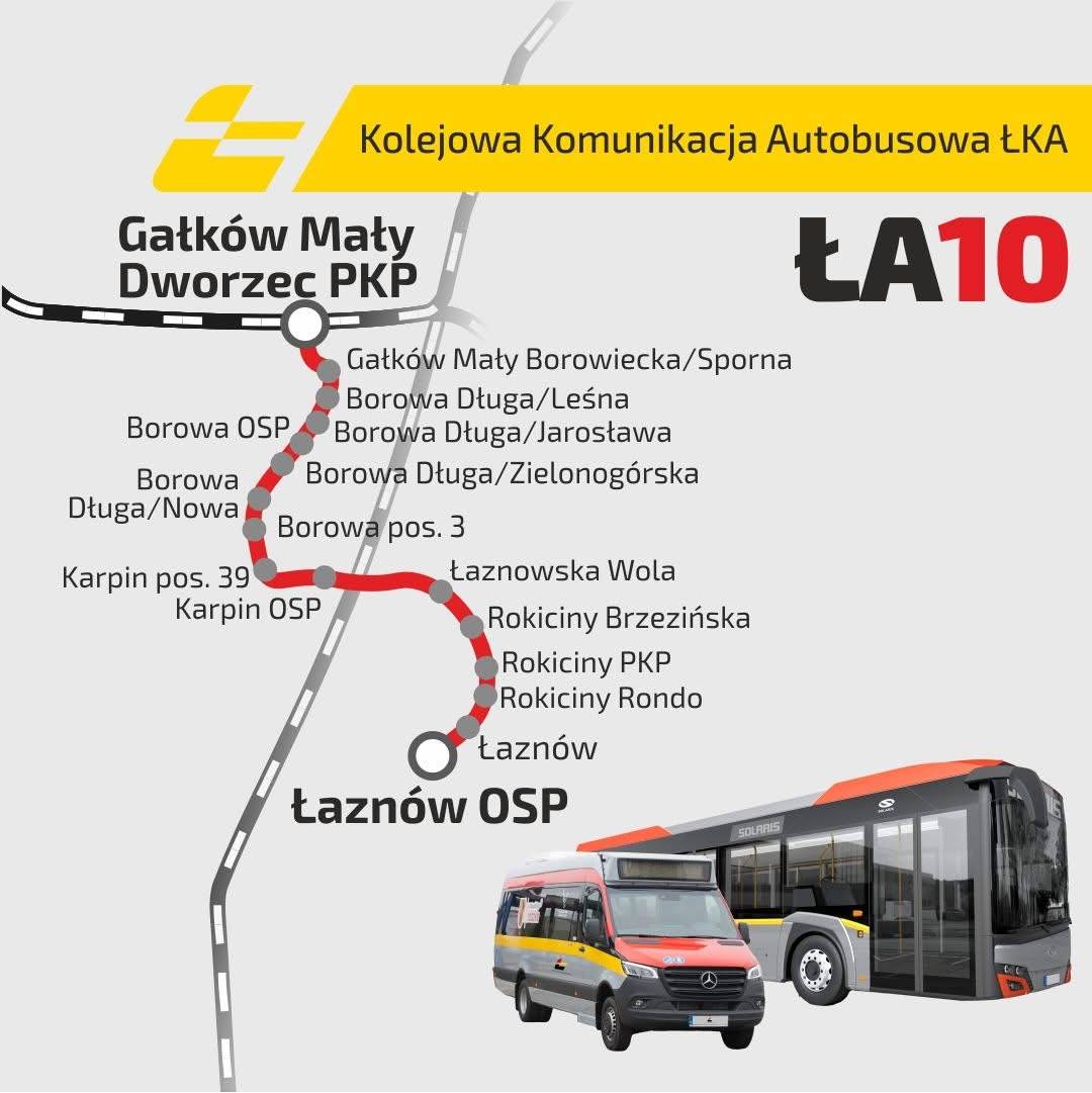 Mieszkańcy regionu mogą już korzystać z linii ŁA10, czyli czwartego połączenia, które łączy okoliczne miejscowości z dworcami kolejowymi. Autobus trasę rozpoczyna przy OSP Łaznów w powiecie tomaszowskim i dojeżdża na dworzec PKP w Gałkówku.