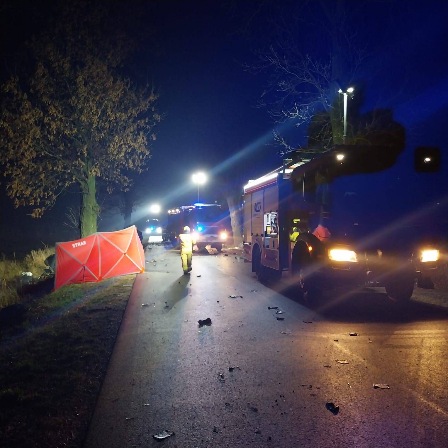 Zgłoszenie w tej sprawie do stanowiska kierowania Komendanta Powiatowego Państwowej Straży Pożarnej w Łęczycy wpłynęło o godzinie 23:36. Jak udało nam się dowiedzieć, samochód osobowy kierowany przez  21-letniego mężczyznę wypadł z drogi i uderzył w drzewo.