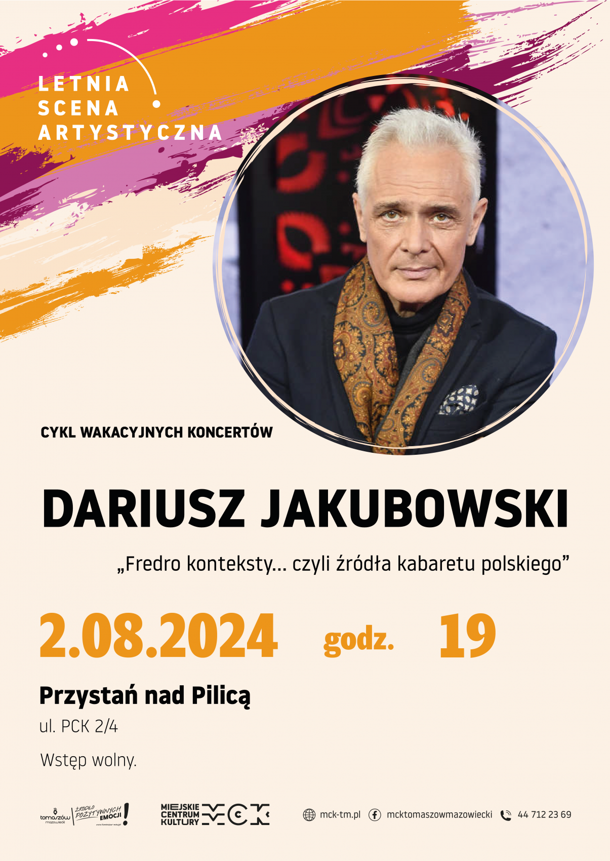 Tym razem w ramach Letniej Sceny Artystycznej Tomaszów Mazowiecki zaprasza na literacko-muzyczny stand-up artystyczny o źródłach polskiego humoru pt. „Fredro – konteksty albo zupa na gwoździu, czyli od Kochanowskiego do Waligórskiego".