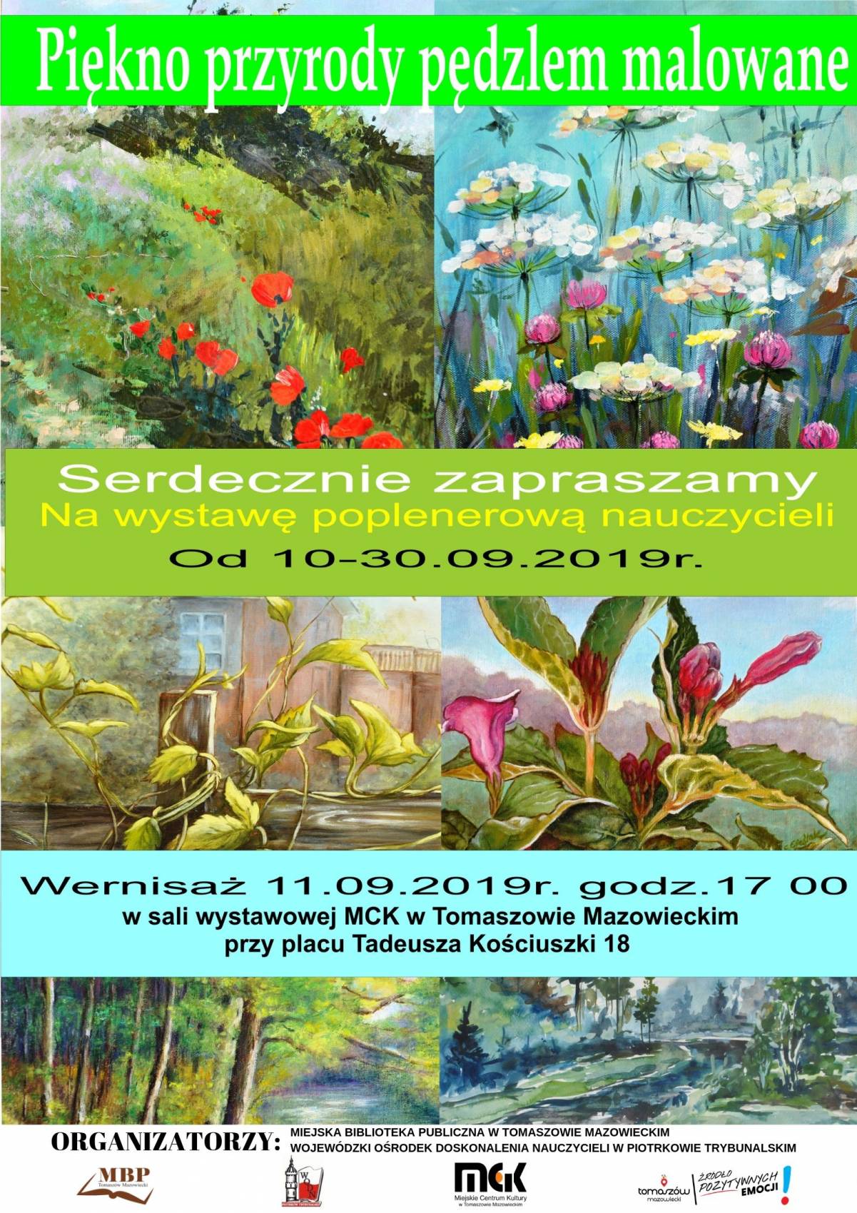 Zapraszamy na wystawę poplenerową „Piękno przyrody pędzlem malowane", organizowaną przez Wojewódzki Ośrodek Doskonalenia Nauczycieli w Piotrkowie Trybunalskim wspólnie z Miejską Biblioteką Publiczną w Tomaszowie Mazowieckim.