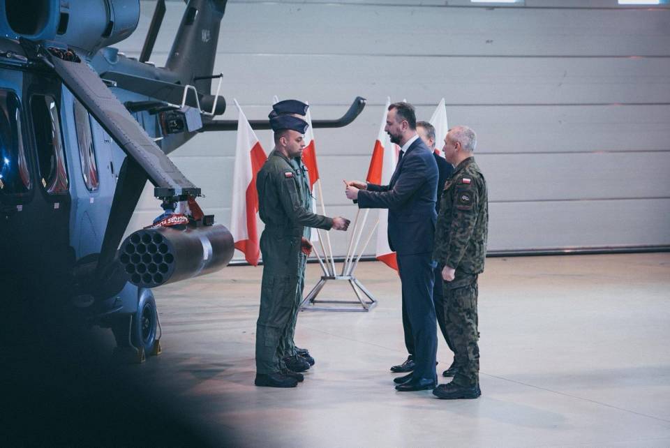 Będę kontynuował dobre projekty. AW149 to jest nowy śmigłowiec, wielozadaniowy, który nie dość, że powstaje z naszymi sojusznikami z Włoch to jest jeszcze produkowany w Polsce. Pierwsze 10 śmigłowców z 32 trafiło do nas z Włoch ale kolejne 22, w tym ten, który dziś jest prezentowany i kolejne będą wyprodukowane w Polsce. Rola tego śmigłowca, jego zadania to wsparcie pola walki, ewakuacja medyczna - to są działania desantowe, transportowe czy logistyczne. Jest dobrze wyposażony – w systemy obserwacji, łączności czy uzbrojenie -mówił minister Władysław Kosiniak - Kamysz w trakcie wizyty w jednostce.