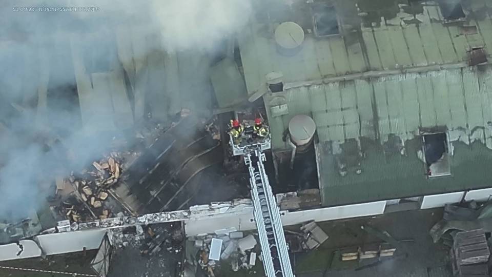 Na miejscu pożaru - oprócz straży pożarnej, działania prowadzi również policja oraz Powiatowy Inspektor Nadzoru Budowlanego.