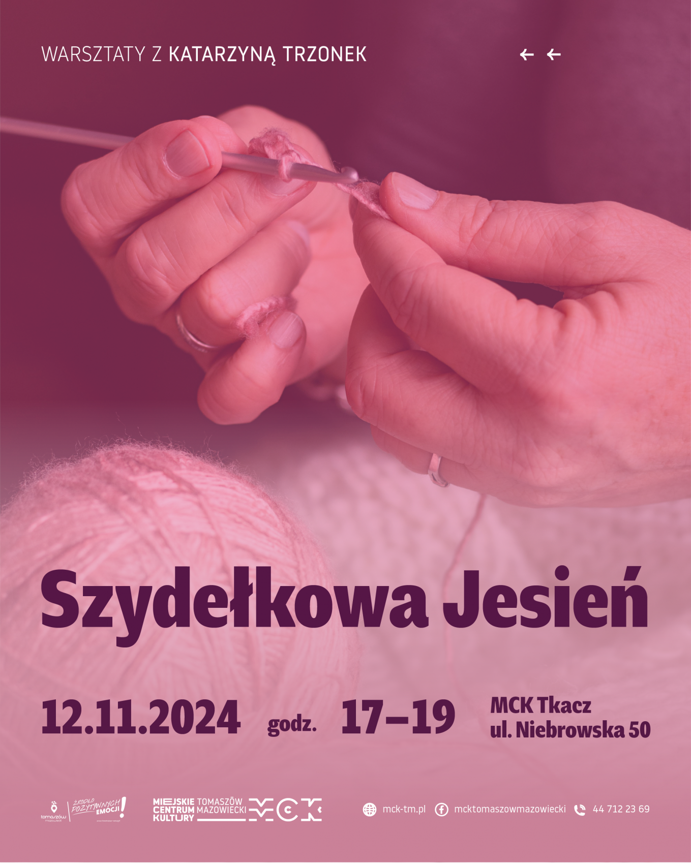 Szydełkowanie to nie tylko wspaniała forma relaksu, ale także sposób na rozwijanie kreatywności oraz umiejętności manualnych. Miejskie Centrum Kultury w Tomaszowie Mazowieckim zaprasza zaawansowane i średnio-zaawansowane osoby na warsztaty szydełkowe z Katarzyną Trzonek. Wydarzenie odbędzie się 12 listopada, w godz. 17–19 w MCK Tkacz, przy ul. Niebrowskiej 50.