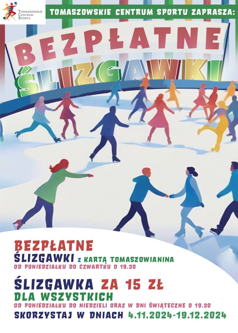 Tomaszowskie Centrum Sportu serdecznie zaprasza na wyjątkowe ślizgawki! Już od 4 listopada do 19 grudnia będzie można pośmigać na torze Areny bezpłatnie i w super niskich cenach.