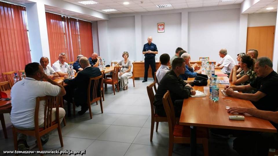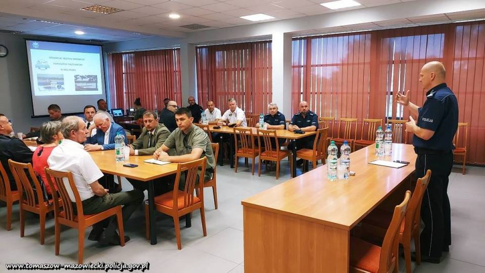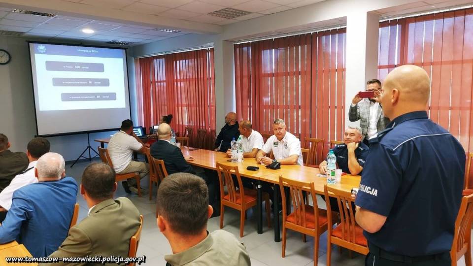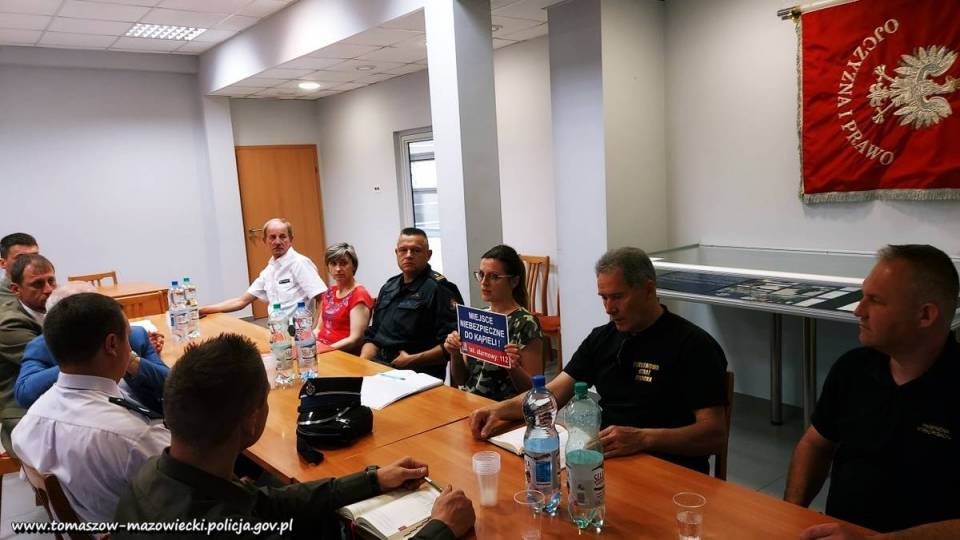 Punktualnie o godzinie 10:00 w sali odpraw tomaszowskiej komendy rozpoczęło się spotkanie zainicjowane przez Komendanta Powiatowego Policji w Tomaszowie Mazowieckim insp. Szymona Hermana, w którym udział wzięli przedstawiciela kilkunastu współpracujących ze sobą instytucji, działających na rzecz bezpieczeństwa amatorów wodnych kąpieli w Zalewie Sulejowskim. Moderujący spotkanie insp. Szymon Herman omówił zagadnienia zwizualizowane w multimedialnej prezentacji, która w całości poświęcona była tematyce bezpiecznego wypoczynku nad wodą. Nadmienił również, że realizowane w bieżącym sezonie zadania prewencyjne i profilaktyczne z tego zakresu, będą doskonale wpisywały się w VI edycję ogólnopolskiej akcji informacyjnej pn. „Kręci mnie bezpieczeństwo nad wodą".