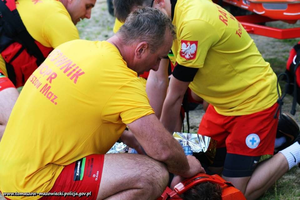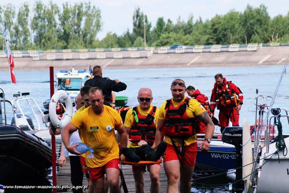 Zasymulowano dwie niebezpieczne sytuacje podczas, których służby musiały podjąć ,,rozbitków" z przewróconej łodzi i kajaka, w tym jednego nieprzytomnego i nie dającego oznak życia, który znajdował się przez dłuższy czas pod powierzchnią wody. Podczas symulacji poszkodowane osoby przetransportowane zostały na brzeg, gdzie nieprzytomna osoba wymagała przeprowadzenia resuscytacji krążeniowo-oddechowej. Po przywróceniu funkcji życiowych, topielec przy wykorzystaniu quada i specjalnej przyczepy do transportu poszkodowanych na noszach został przewieziony i przekazany służbom medycznym.