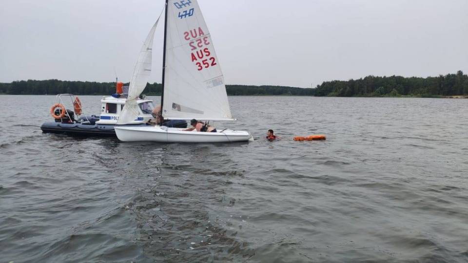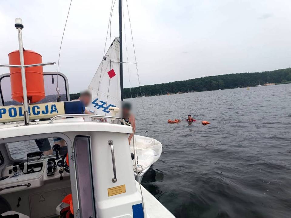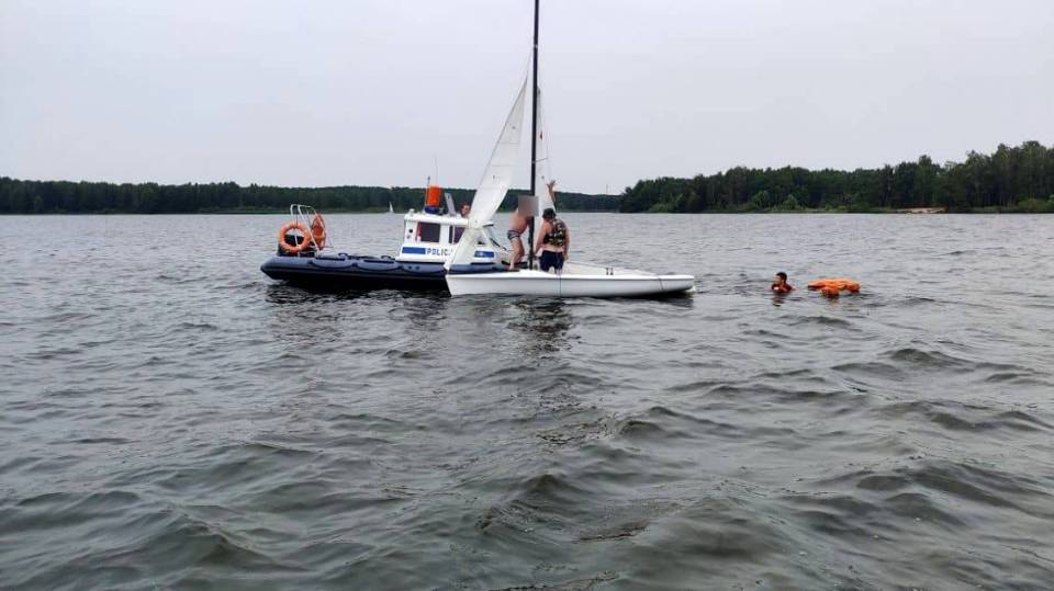 Policyjni wodniacy podczas pełnienia służby na wodach Zalewu Sulejowskiego zauważyli przewróconą żaglówkę. Od razu podjęli akcje ratunkową, jednocześnie powiadamiając ochotników z Wodnego Ochotniczego Pogotowia Ratunkowego. Dzięki szybkiej reakcji dwóch mężczyzn wyłowiono z wody, a żaglówkę bezpiecznie odholowano.