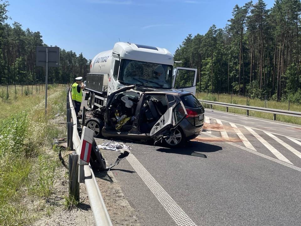 Do zdarzenia doszło w poniedziałek, 30 czerwca tuż przed godziną 10.00 rano. Wstępnie wszystko wskazuje na to, że kierujący samochodem osobowym Kia, zjechał na przeciwległy pas ruchu, wówczas doszło do czołowego zderzenia z ciągnikiem siodłowym przewożącym ładunek gazu.