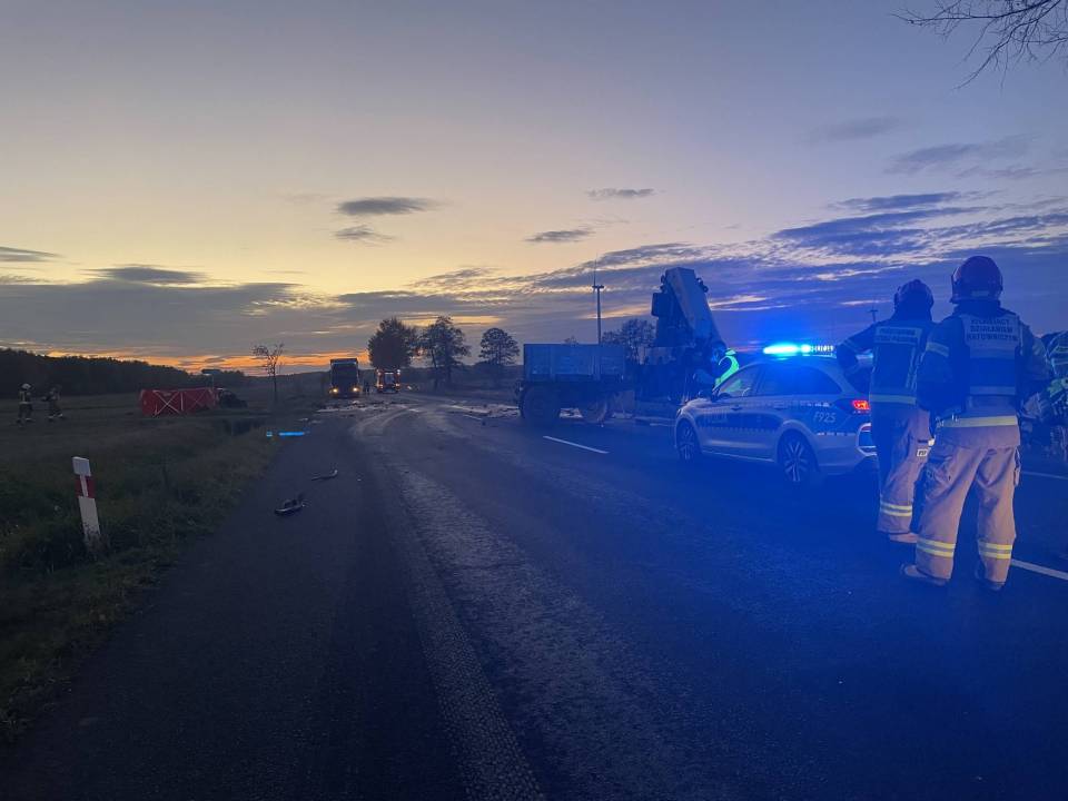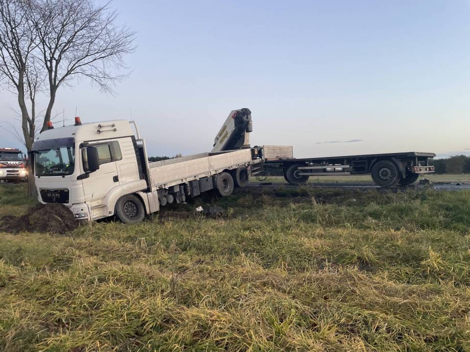 - Nie wiem co się stało dokładnie, bo jechałem tuż za MANem, widziałem tylko jak jego kierowca gwałtownie odbił w kierunku pól, ewidentnie chciał ominąć osobówkę, która zjechała na jego pas ruchu. Niestety, nie udało się, ciężarówka "zahaczyła" o prawy przód osobówki, tą dosłownie "wystrzeliło". Wysiadłem i podbiegłem, by pomóc poszkodowanym, mężczyzna kierujący osobówką był poza pojazdem  - przekazał nam kierowca TIRa, który jechał tuż za MANem.