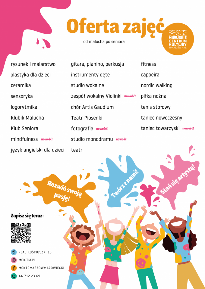 Nowy rok szkolny to nie tylko początek nauki, ale także zajęć w placówkach MCK: MCK Tkacz, MCK Browarna i MCK Za Pilicą. W ofercie znajdują się zajęcia dla dzieci, młodzieży, dorosłych oraz seniorów.