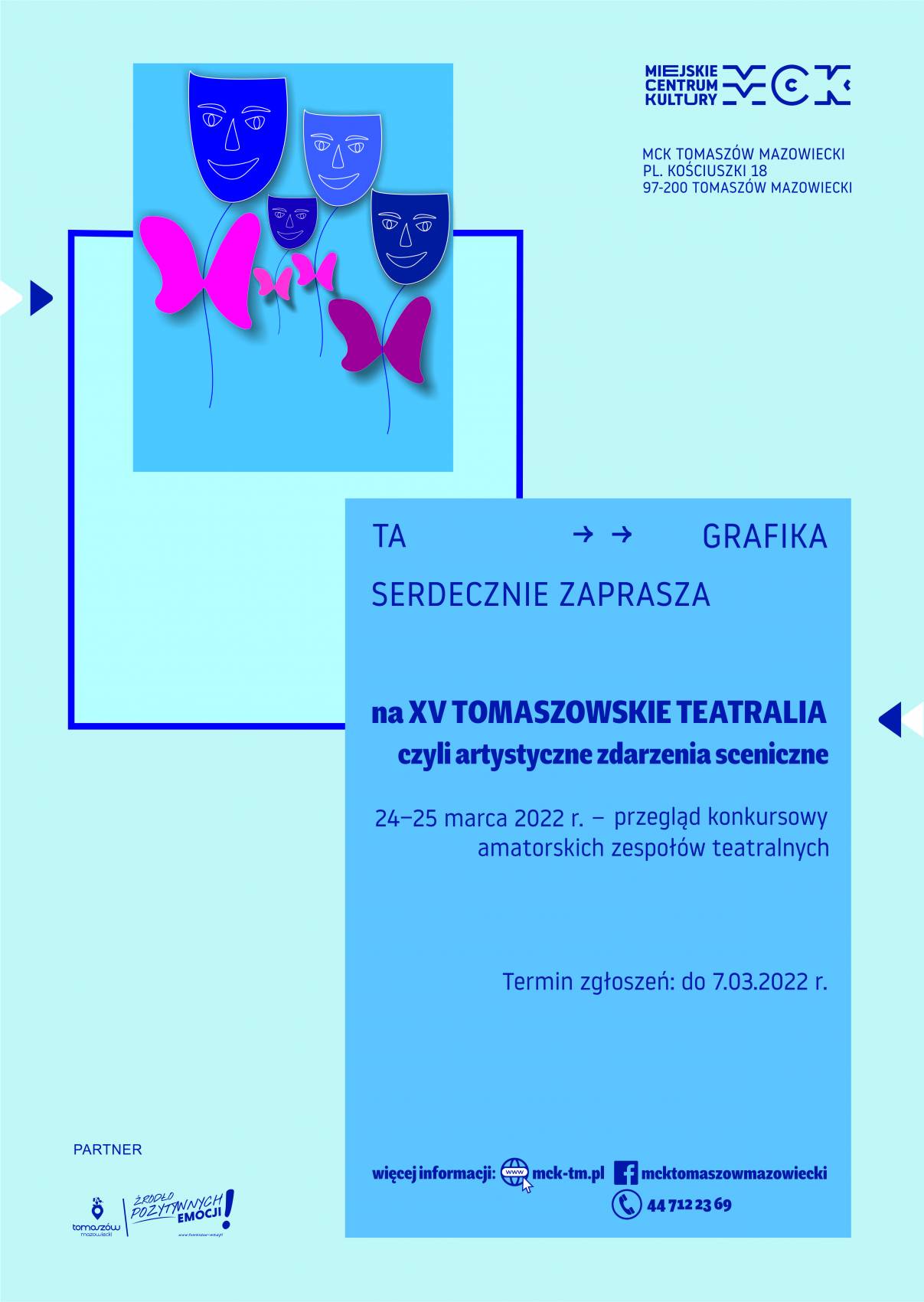 Miejskie Centrum Kultury w Tomaszowie Mazowieckim informuje, że w związku z sytuacją pandemiczną oraz licznymi prośbami nauczycieli i opiekunów zespołów teatralnych o zmianę terminu organizacji 15. edycji Tomaszowskich Teatraliów, wydarzenie zostaje przesunięte na przedostatni tydzień marca br.