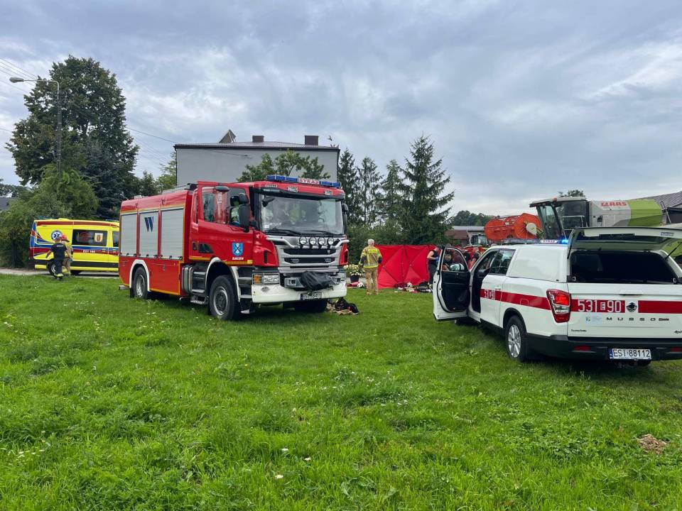 Jak wynika ze wstępnych ustaleń, mężczyzna próbował samodzielnie naprawić maszynę rolniczą. W trakcie tych czynności został porażony prądem pochodzącym z urządzenia. Na miejscu zdarzenia obecny był świadek, który natychmiast ruszył z pomocą i podjął próbę ratowania poszkodowanego - niestety bezskutecznie.