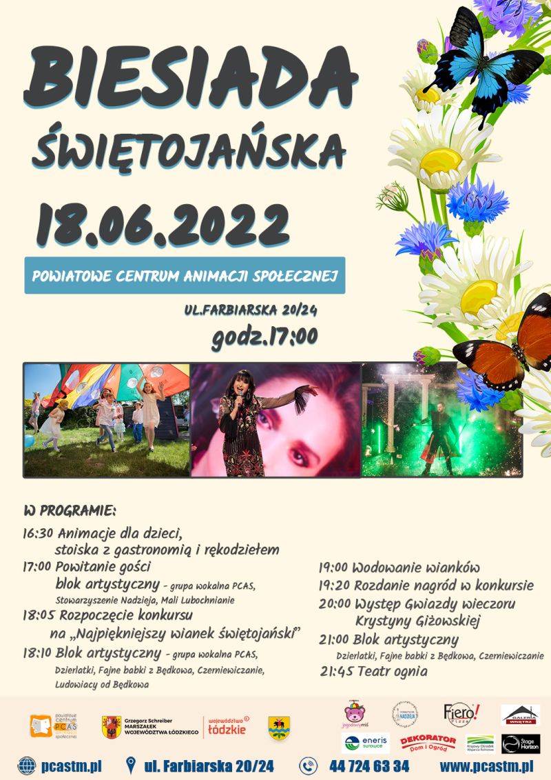 Dorota Ignasiak – dyrektor Powiatowego Centrum Animacji Społecznej w Tomaszowie Mazowieckim, zaprasza na Biesiadę świętojańską, która odbędzie się w sobotę, 18 czerwca 2022 roku na terenach Powiatowego Centrum Animacji Społecznej przy ulicy Farbiarskiej 20/24.