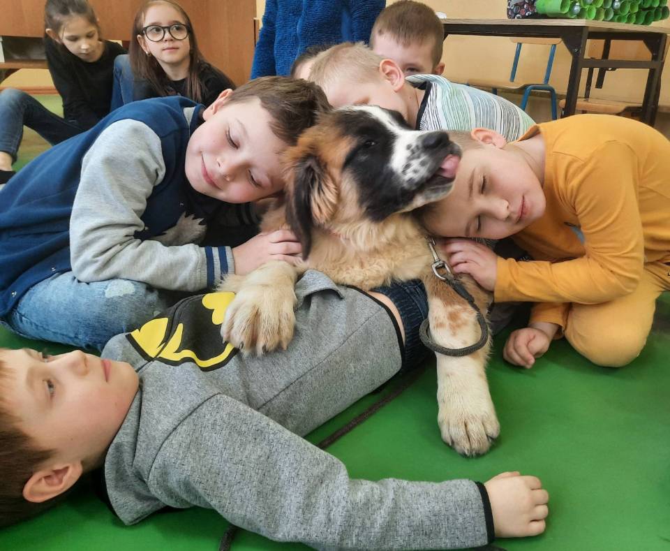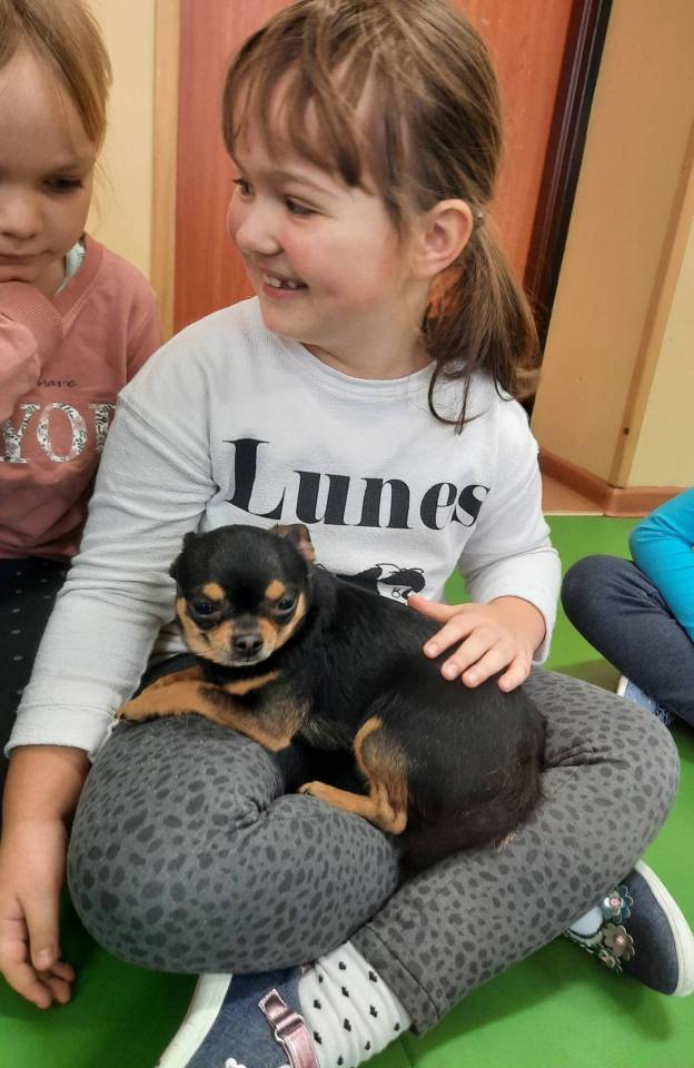 Z wizytą u dzieci pojawiły się już psy rasy chihuahua, szczenię rasy moskiewski stróżujący, pieski rasy yorkshire terier oraz suczka rasy bulterier. W czasie spotkań przedszkolaki poznają zasady, których należy przestrzegać podczas zabawy z pupilem, dowiadują się jak go karmić, w jaki sposób dbać o higienę czworonoga oraz jak zachować się w sytuacji, gdy nas zaatakuje. Dzieci dowiadują się czym jest mowa ciała psa, czyli najważniejsze sygnały: strach, agresja, chęć zabawy. Każde spotkanie z czworonożnymi pupilami kończą wspólne zabawy i spacer. Obcowanie z psimi terapeutami jest za każdym razem wielkim wydarzeniem dla dzieci, wzbudza mnóstwo radości, uczy empatii, odpowiedzialności, wspomaga harmonijny rozwój psychomotoryczny, ale też pomaga pokonać lęk przed psami oraz przyczynia się do wzrostu poczucia bezpieczeństwa.