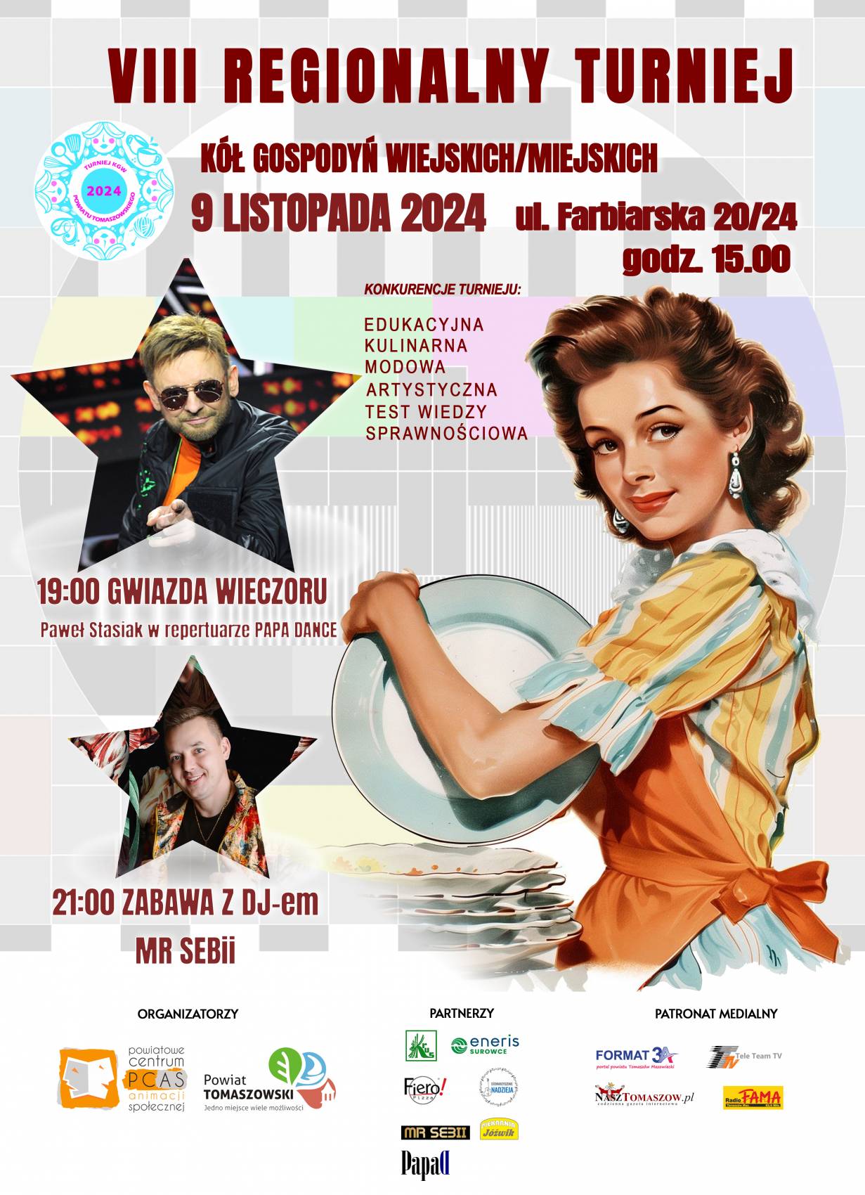 - Bardzo serdecznie zapraszam Państwa do udziału w tym wyjątkowym wydarzeniu. Turniej jest naszą największą imprezą, która gromadzi koła z terenu naszego województwa. Co roku dołączają do naszej turniejowej rodziny nowe jednostki, dzięki czemu impreza powiększa swój zasięg. Celem tego przedsięwzięcia jest przede wszystkim integracja środowiska, wymiana doświadczeń i oczywiście wspólna zabawa. Nie zabraknie też elementu rywalizacji, bo to przecież turniej, ale warto podkreślić, że nikt nie wyjeżdża od nas bez nagrody za ciężką pracę, włożoną w przygotowanie się do tylu różnorodnych konkurencji. W tym roku przeniesiemy do okresu PRL-u i ten właśnie klimat zagości w Powiatowym Centrum. Będzie moda tego okresu, historia, kultura i oczywiście pyszne jedzenie, które królowało wtedy na naszych stołach. Co roku koła skrupulatnie przygotowują swoje stanowiska, na których prezentowane są m.in. potrawy konkursowe, wymagane regulaminem, ale też swojska kuchnia. Zapraszam Państwa do odwiedzenia PCAS-u. Można kibicować, wspierać i poczuć tę wyjątkową atmosferę – mówi dyrektor Powiatowego Centrum Animacji Społecznej.