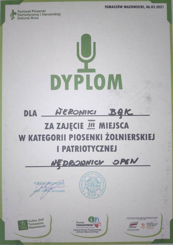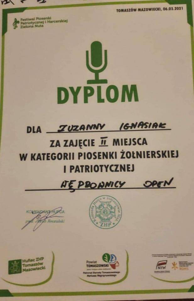 Zuzanna Ignasiak, która zaśpiewała piosenki "Będziemy Polską" oraz "Walczyk", w kategorii Piosenka żołnierska i patriotyczna, zajęła drugie miejsce, a Weronika Bąk piosenkami pt. "Inka" oraz "Warto jest wierzyć" w tej samej kategorii wyśpiewała trzecią nagrodę.